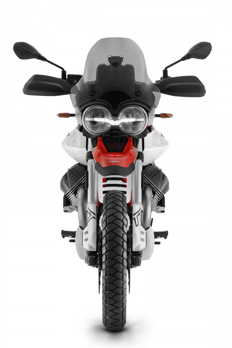 Dotée de roues à rayons et de pneus tubeless sculptés de 17" et 19", la V85TT offre une adhérence fiable sur tous les terrains. Son nouveau sabot en aluminium protège le bas du moteur, tant que les protège-mains améliorés assurent une protection supplémentaire lors des trajets hors route.